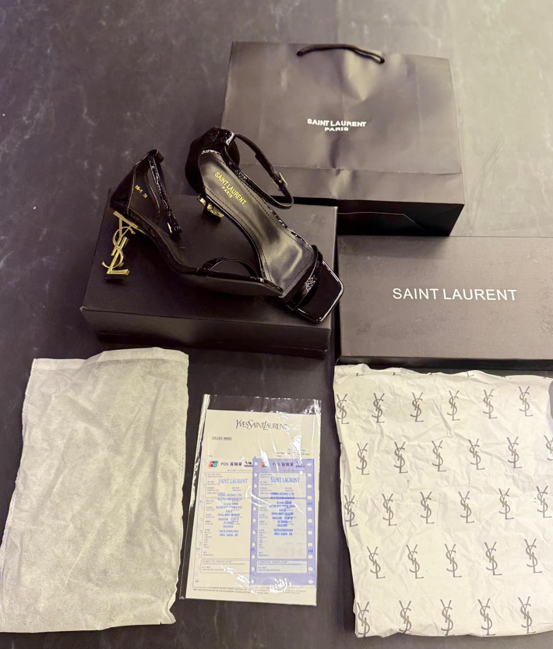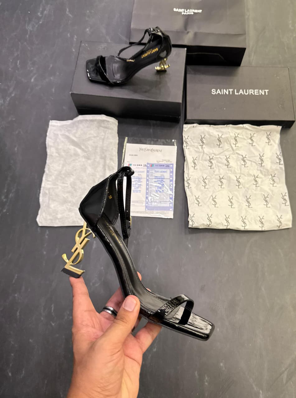 YSL- PATENT BLACK GOLDEN HEELS